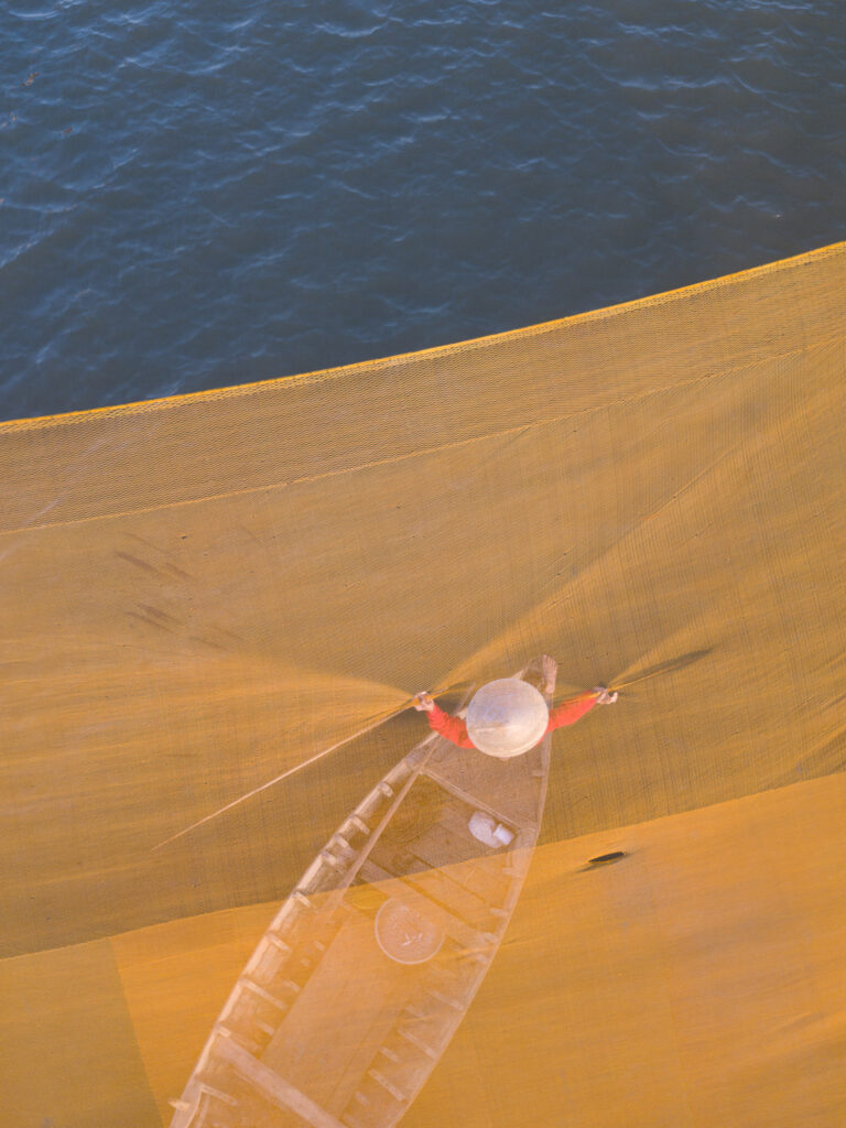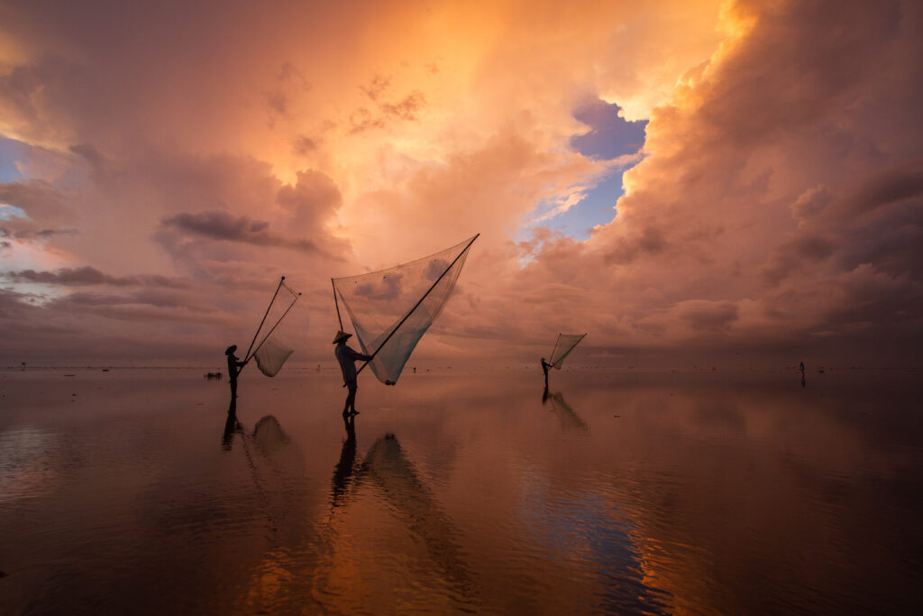 There, in the tranquil dawn, the water becomes a vast mirror, perfectly reflecting the sky. This is when the local fishermen answer the call of the sea, using traditional tools and methods perfected over centuries.